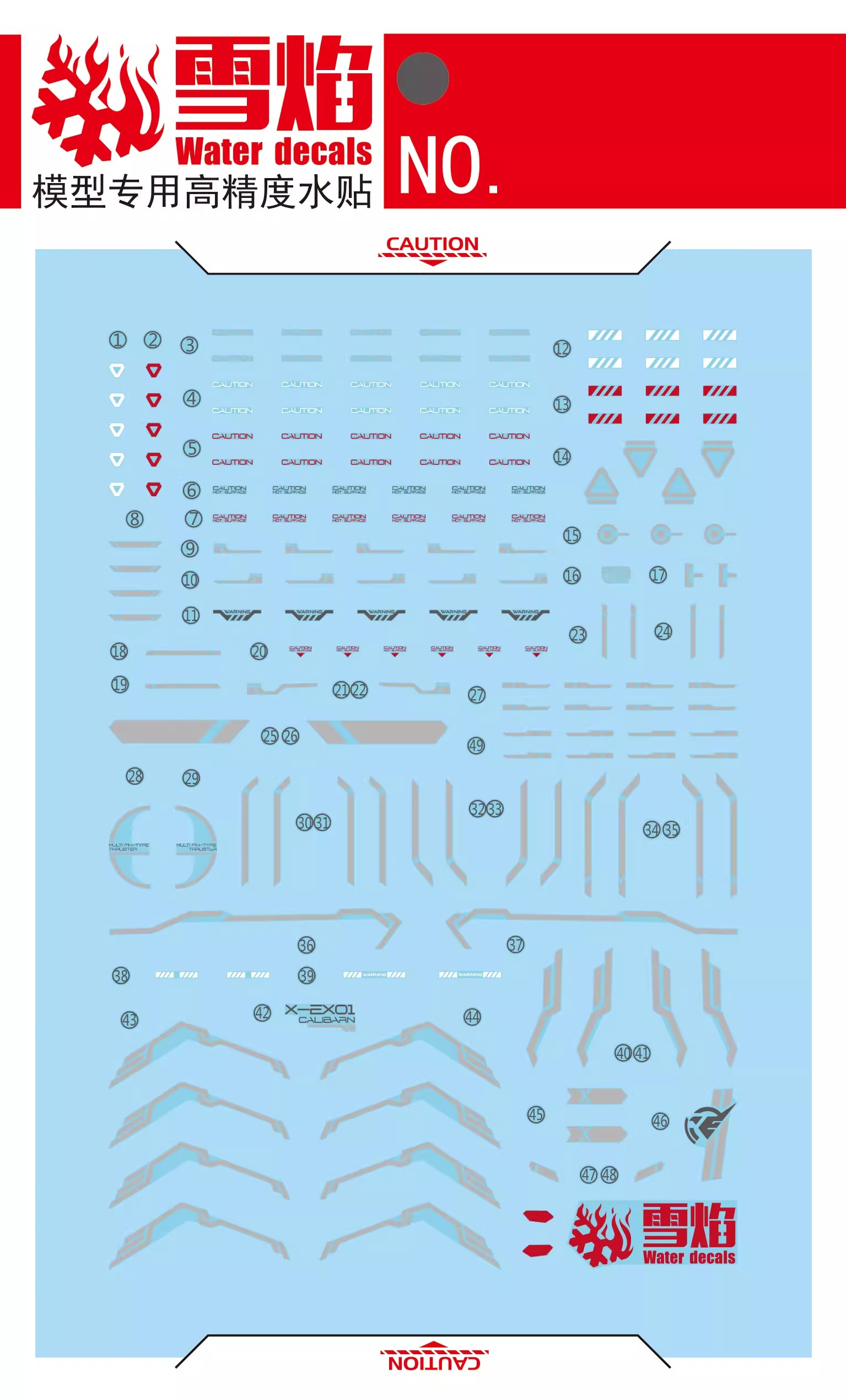 ดีคอลน้ำ HGTWFM GUNDAM CALIBARN HG-77 Water Decal Fluorescent color สติ๊กเกอร์น้ำสะท้อนแสงเมื่อส่องด้วย UV Blacklight